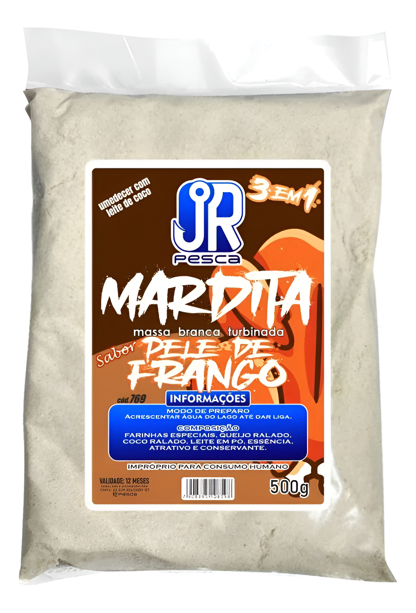 Apresentamos a nova Linha de Massas Mardita JR Pesca, desenvolvida especialmente para pescadores exigentes que buscam alta atratividade, versatilidade e resultado nas pescarias de fundo. Com 500g de uma fórmula turbinada e exclusiva, essa massa une o melhor dos sabores naturais para fisgar os grandes exemplares. • Massa de Pesca 3 em 1 – Coco Ralado, Queijo Ralado e Leite em Pó • Aroma marcante e alto poder de atração para grandes peixes de fundo • Ideal para pesqueiros e lagos com espécies como Tambaqui, Pacú, Patinga e mais • Textura ajustável – fácil de modelar conforme sua preferência • Peso: 500g – Rende muito e tem ótima consistência • Excelente rendimento e fácil preparo • Fórmula inovadora com ingredientes selecionados • Ideal para pesca de fundo com grande precisão e eficiência • Produto exclusivo e de alta qualidade da JR Pesca Modos de preparo: 1- Misture a Massa Mardita com leite condensado até que a massa não grude mais na mão, assim você terá um "beijinho turbinado" mais doce; 2- Misture a Massa Mardita com leite de coco até que a massa não grude mais na mão, assim você terá um "beijinho turbinado" mais oleoso; 3- Misture a Massa Mardita com a água do lago até que a massa não grude mais na mão, assim você terá a massa branca com uma ótima liga para arremessar.